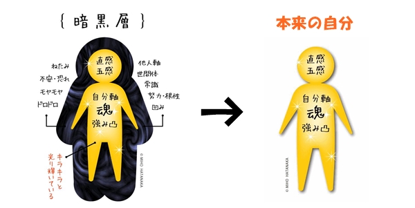 小さい頃に夢と強みを打ち砕かれた大人、小さい頃に凹みを埋めるよう叱られてきた大人が、「暗黒層」をはがして、自分の可能性に気づき、自信を取り戻す必要があります。