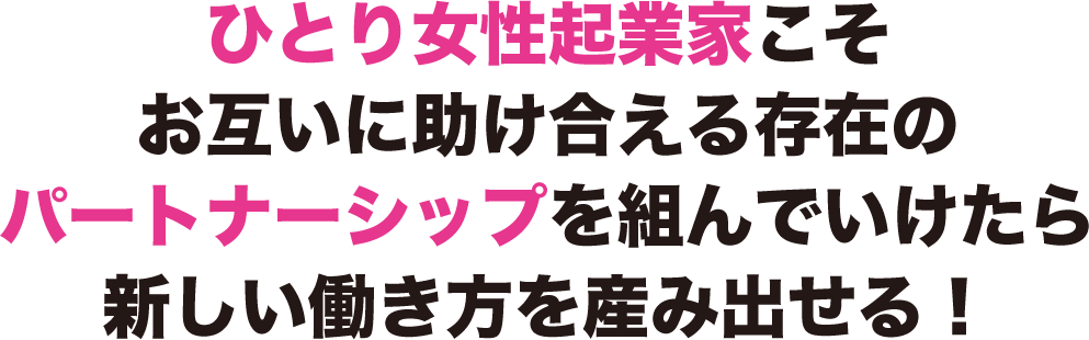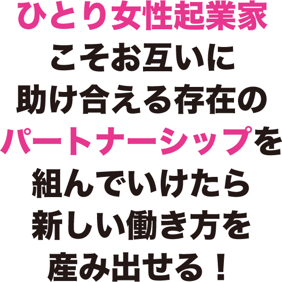 だから、お互いに助け合える存在のパートナーシップを組んでいけたら、新しい働き方を産み出せるでしょう。