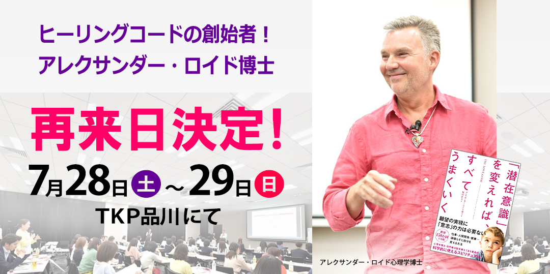 アメリカの心理学博士 アレクサンダー・ロイド博士のヒーリングコード3日間セミナー(海外招致)を開催し、3日間のべ182名にご参加いただくこともできました。