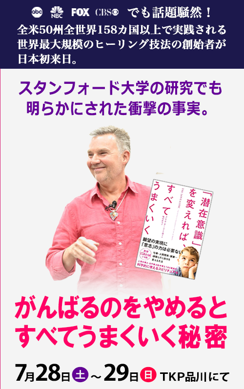 7/28(土)のみ 世界158ヵ国で実践される、潜在意識をポジティブに変える方法をご紹介! |